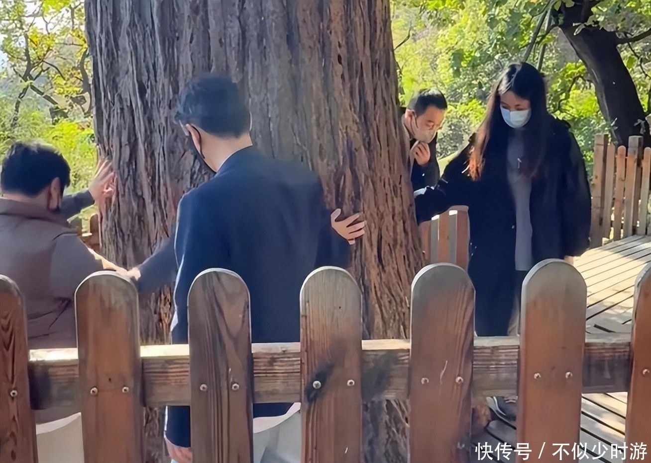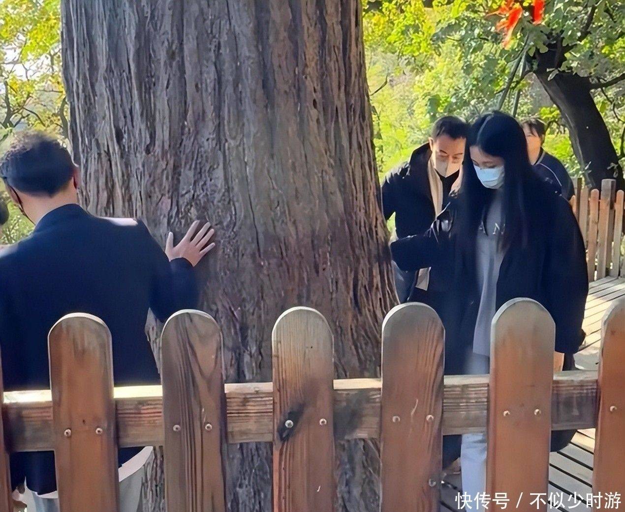起初她偶尔与其中一位长辈并肩行走,后来便一直紧跟在父亲身旁,默默绕行于山上那棵千年古树周围。